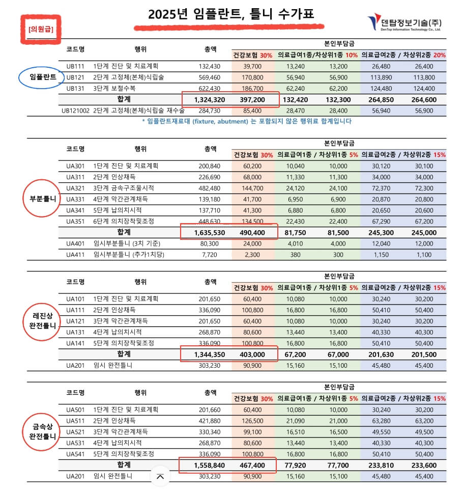 4. 2025년 임플란트 틀니 가격 [2025.01.01 기준]